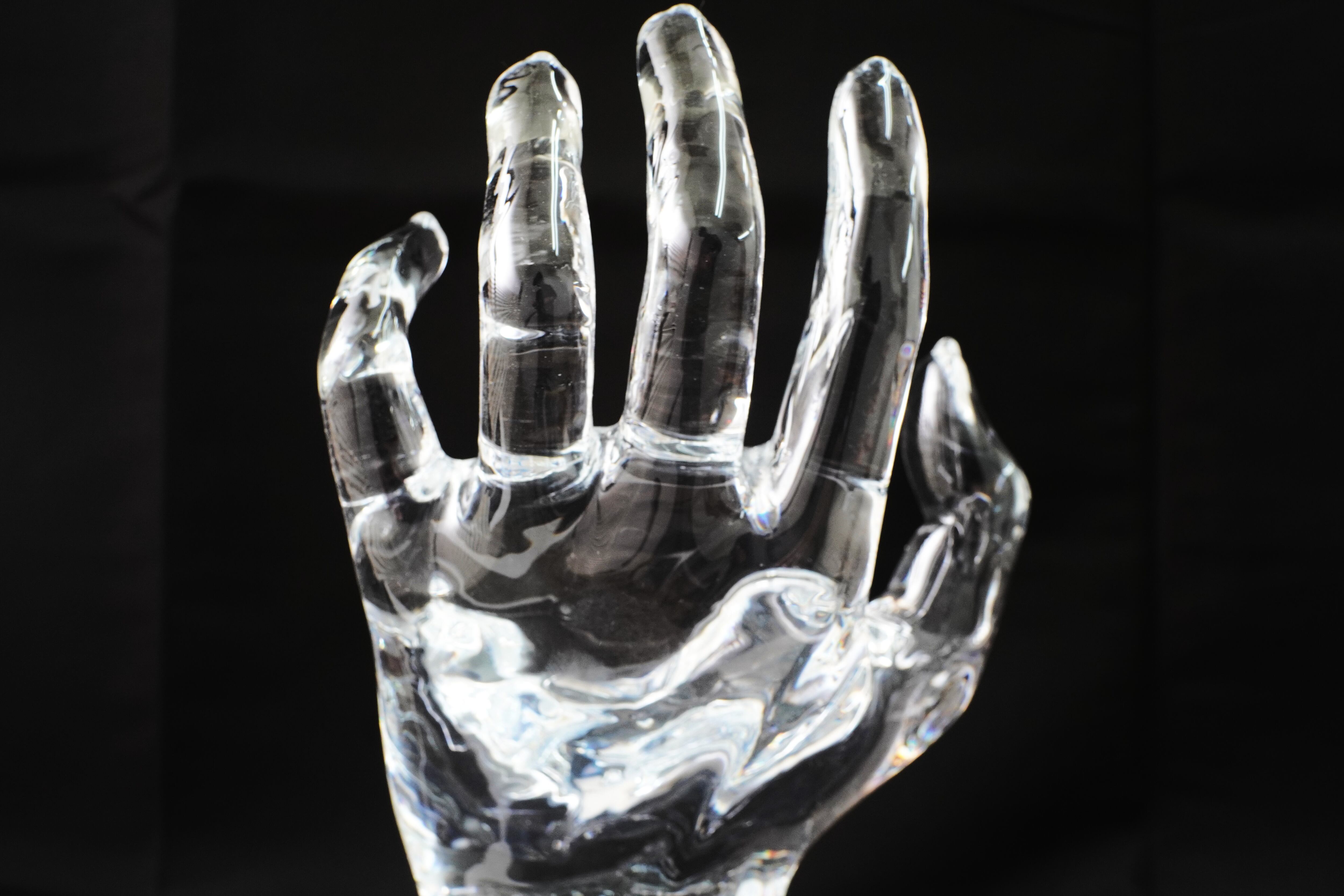 透明エポキシ樹脂で作った実物大の左手模型です。